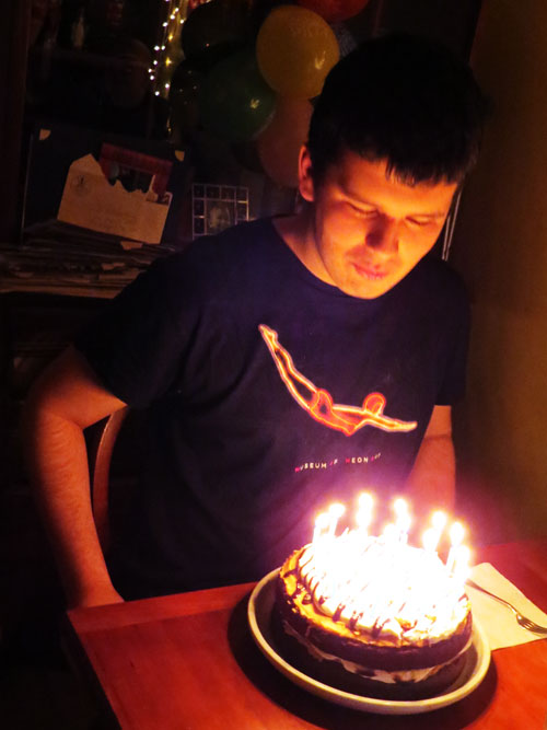 We celebrated The Boy’s birthday with pulled pork sandwiches, coleslaw, Lay’s Wavy chips, and finished it off with a chocolate peanut butter mousse cake. Recipe behind the cut.
