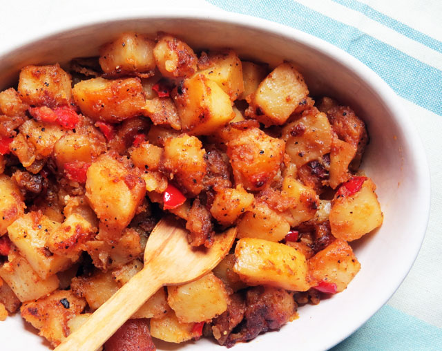 If making home fries in the morning seems daunting, you can make them ahead of time and reheat while you’re frying the eggs! I made a double batch that I served with steak, then reheated the leftovers for brunch the following day.