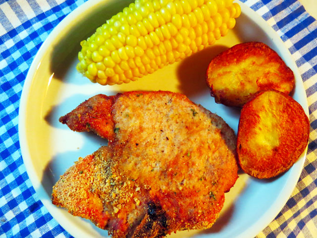 Chicken or pork chops coated with Shake ‘n Bake were one of my quickie meals. Throw some meat into a bag of flavored bread crumbs, shake, and toss it in the oven. What could be easier? Making your own coating mix to have on hand is even better, besides saving money, you can actually pronounce all of the ingredients that went into making it. It’s a big hit with the fellas, and the mix is handy when making meatballs!