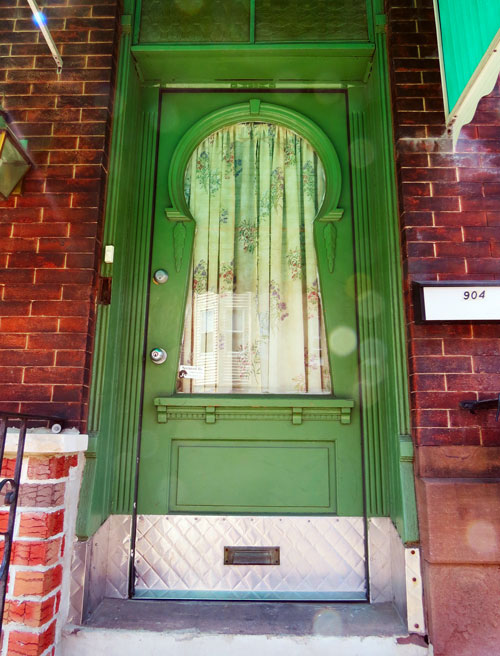 Running around South Philly as much as I do – every once in a while I’ll stumble upon an architectural gem like this door. I love the keyhole shaped leaded glass window, and the quilted tin that surrounds the mail slot. You’ll never find a door like this at Home Depot!