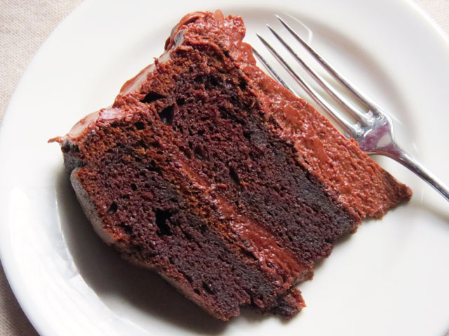 I celebrated a birthday over the weekend with this killer chocolate cake and fudge frosting. This cake definitely helps to ease you into being another year older!