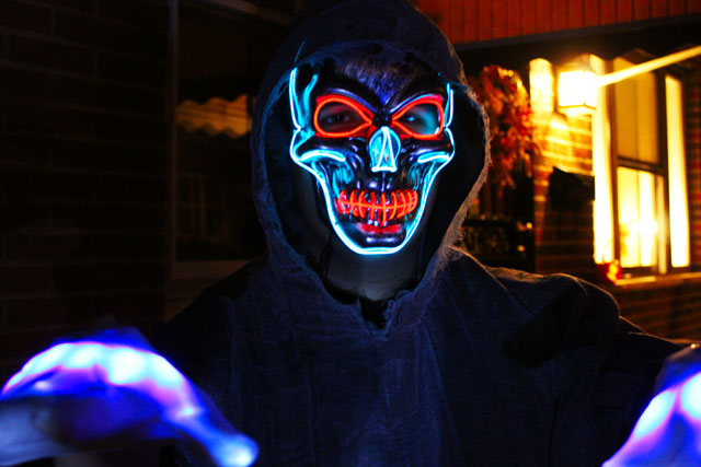 Due to our son’s imposing height, we decided to go with a scary costume rather than a whimsical one. Lloyd frightened some of the younger trick or treaters, but what’s Halloween without a good scare?