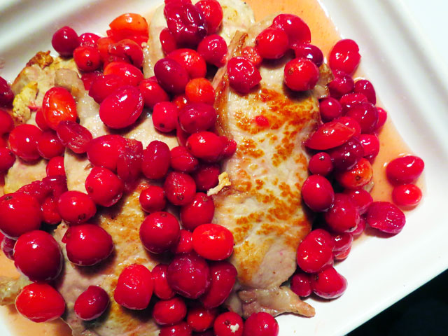 Thanksgiving is right around the corner, and bags of cranberries have made an appearance on 9th Street. There will be cranberry orange relish, and breads, and pies – but last night there were brined pork chops and cranberries layered in a baking dish and they were magnificent!