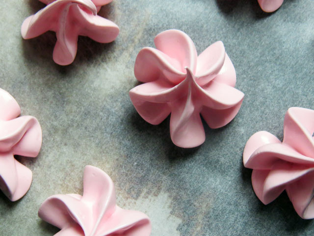 Last week, I made espresso meringues, and came to the realization that not everyone is a coffee fan. So, it was back to the KitchenAid stand mixer, this time for a pink tinted, vanilla version to add some color to the cookie tins.