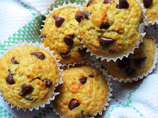 I was tidying the kitchen yesterday, when I came across a recipe card from Joe’s Aunt Jean. Guests were asked to share a recipe with me at my bridal shower, and over the years I’ve made almost all of them. Except for sweet potatoes with brown sugar and marshmallows, that’s like sprinkling sugar over a bowl of ice cream. Aunt Jean’s muffin recipe is just perfect – the only change I made was adding a handful of chocolate chips to the batter, because I love the combination of chocolate and orange!