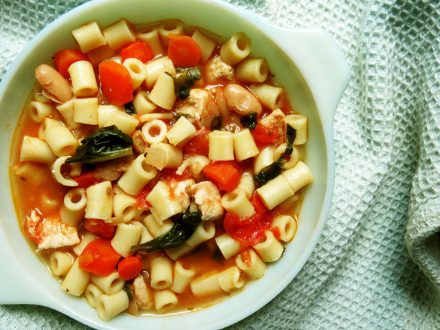 There’s nothing better on a cold night than this hearty chicken stew with beans, veggies, and pasta. When the temperatures drop, I want to cook everything – pot roast, bread, and this stew – in my Dutch oven. This comfort food is the consolation prize for the snowfall we didn’t get over the weekend!