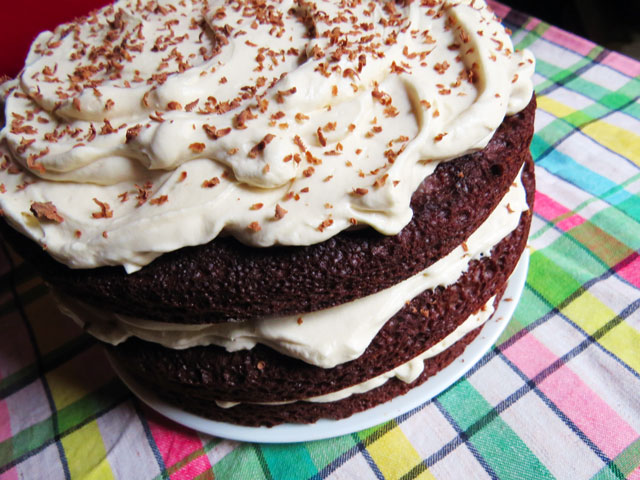 It’s my neighbor’s birthday today, this is the cake I made for her celebration tonight. A three layer chocolate cake with a whipped cream icing with cream cheese, light brown sugar, topped with grated chocolate. It does require to be made ahead of time, as the frosting needs time to set, but it’s easy to make, and so good!