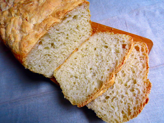 - Generously grease an 8.5″ x 4.5″ loaf pan with vegetable shortening or butter. Transfer dough to prepared pan. Let rise in draft free, warm spot for 20 to 30 minutes. Meanwhile, preheat oven to 425º. When oven comes to temperature, bake for 15 minutes, then reduce heat to 375º and bake for another 20 minutes until golden. Let cool in pan for 10 minutes, then turn out to a wire rack.