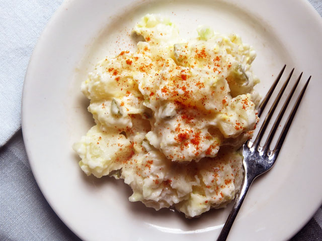 Potato salad is a summertime comfort food. The beauty of it is that it can be made in advance, then served with everything from burgers, ribs, and chicken. Joe eats the leftovers on saltines, a taste sensation he picked up from his mom – try it sometime, it’s good!