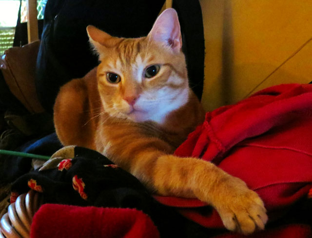 I’ve been doing the folding in the basement lately, because as soon as I bring the basket upstairs – he comes running and jumps in it!