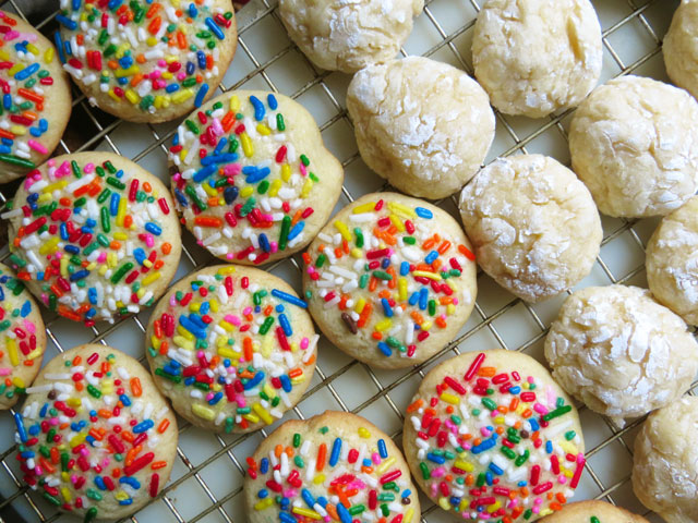 I’ve been stockpiling cookie dough in my freezer to wait for a quiet day to bake. That day was yesterday – rough estimate, I baked about fifteen dozen cookies! One of my favorites are the sprinkle cookies, they’re like the ones you get in an Italian bakery – only better. There’s lots of vanilla extract and lemon zest in the dough, and who doesn’t love a cookie with sprinkles? You can get the recipe here. Joe’s favorite are the lemon butter cookies which I make just for him. They’re soft, made with lemon juice, lemon zest, cream cheese, and rolled in confectioners sugar. You can get that recipe here. Happy baking!