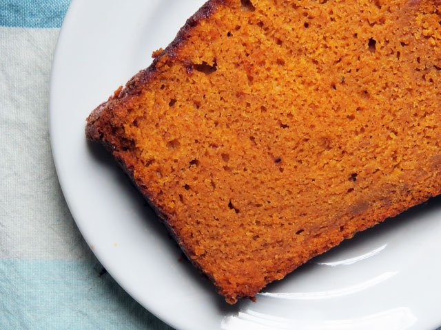 Sunday was one of those gray, rainy, chilled to the bone days. After braving the elements, we returned home, had lunch – then I turned on the oven to bake something to warm the kitchen. I had a can of pumpkin on hand leftover from Thanksgiving, and since I’m not a big pumpkin pie fan – I thought a pumpkin bread would be just the thing to have in the afternoon with a cup of coffee.