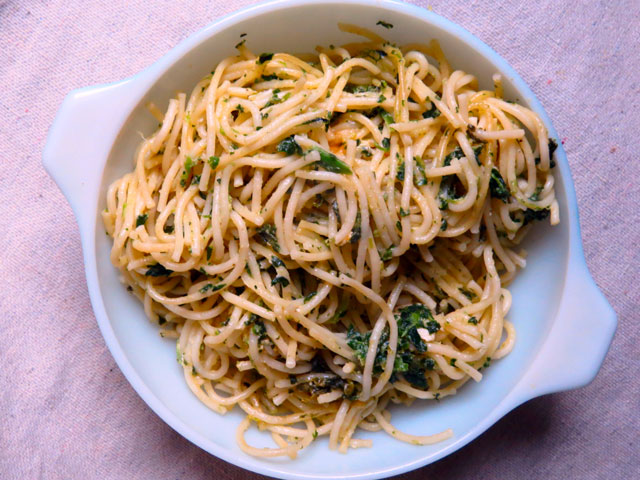 - 6 oz. spaghetti, broken in three pieces