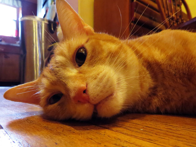 Yep! His favorite place to nap is under the dining room table in the summer – cooler down there.