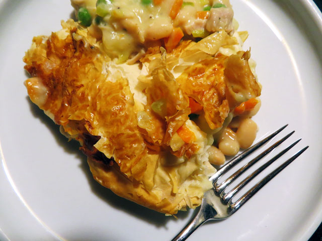 I’m always looking for new ways to use up the leftover turkey from our holiday meal. I’ve made crepes, tetrazzini, and large vats of soup – but a pot pie felt like the ticket since I had an excess of vegetables in the fridge and wanted to add a new post-Thanksgiving dish to my bag of tricks! This would also work well with leftover chicken, or as a vegetarian option, substitute a vegetable stock for the chicken, and beans instead of turkey.