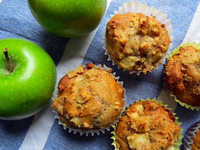 It’s been so cold lately, it’s great to have an excuse to turn on the oven and bake something. These muffins have chunks of apples are topped with brown sugar, perfect with coffee in the morning!