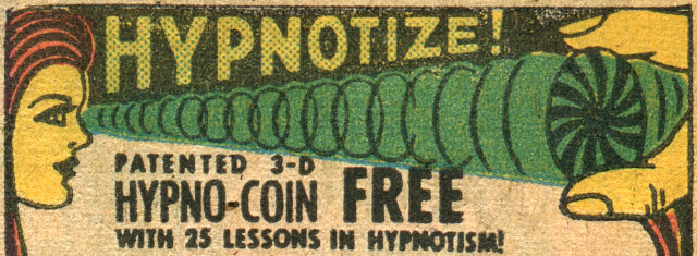 “With the magic power of hypnosis you can hypnotize at a glance, make people obey your commands without subject’s knowledge.”