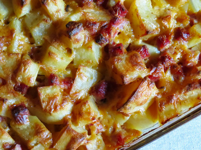 Easter is next week, and this is the perfect recipe to use up the leftover ham from dinner. Cubed Russet potatoes and diced ham baked in a simple béchamel sauce with a handful of shredded cheddar cheese. Add a vegetable or salad for an easy, delicious dinner!