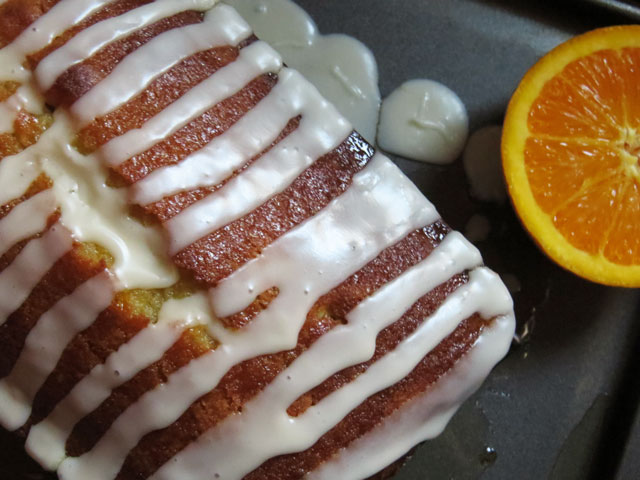 - Make glaze – whisk confectioners sugar and orange juice until smooth, drizzle over loaf.