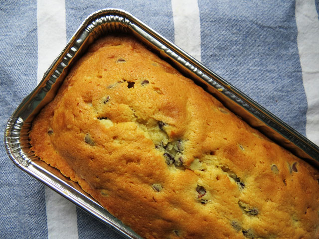 It was a cold, rainy weekend – perfect reason to hunker down, watch movies, and bake something. This weekend, it was this sour cream poundcake with orange zest and chocolate chips. I love the orange – chocolate combo, you can eat this for breakfast or dessert!