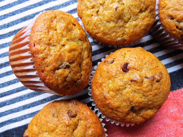 I’m always looking for a way to use up the spotted bananas in the fruit bowl. These muffins get their flavor from bananas, peanut butter, and chocolate chips – a perfect trifecta!