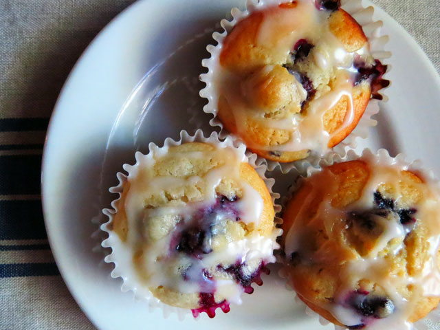 I know, I just posted a blueberry muffin recipe – but these have lemon zest and juice AND a lemon glaze! I’m thrilled to see summer fruit make an appearance in the market – especially blueberries and peaches. These muffins are very good!