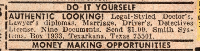 I wonder what the ad cost and was it worth the guy’s time. Maybe he worked for a printer.