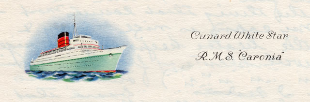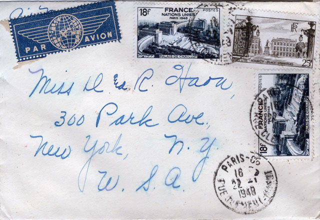 The letters belonged to sisters Dorothy, Marion, and Ruth Haon. An internet search revealed that the Haon sisters were persons of considerable note. They were well off, and for a time, they lived together at 300 Park Avenue in New York. Other pieces of mail showed that there were trips to Paris on the Cunard White Star R.M.S. Caronia – which featured the post war luxury of an outdoor swimming pool and bathroom/shower facilities in every cabin.