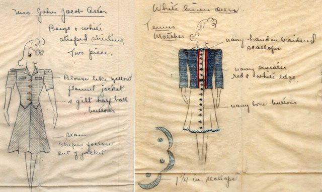As it turns out, Dorothy Haon was a graduate of The New York School of Fine and Applied Art (which eventually became Parsons The New School of Design) in 1923 – 24. She went on to become a fashion designer and had a career in merchandising, sometimes working with her sister Marion. Among the letters were delicate pencil drawings of dresses, accented with colored pencils on tracing paper.