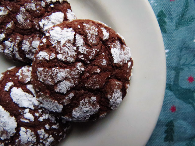 A chocolate cookie for the holiday cookie tray. This cookie has melted chocolate, cocoa powder and is rolled in granulated and confectioners’ sugar before going into the oven! These rich cookies are a chocolate lover’s dream!