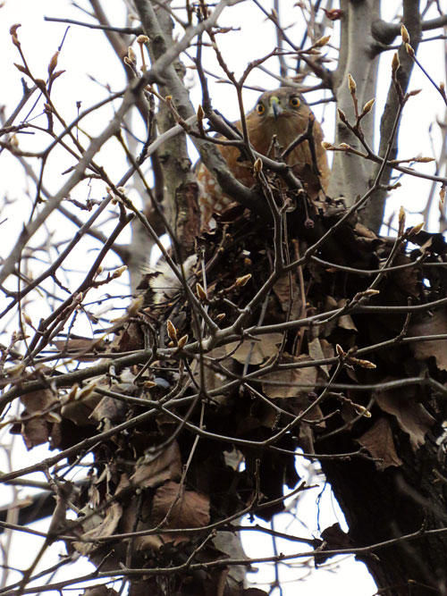 Judging from the squawking of a squirrel early this morning, he was none too happy that a hawk had taken temporary residence in his nest waiting for his breakfast.
