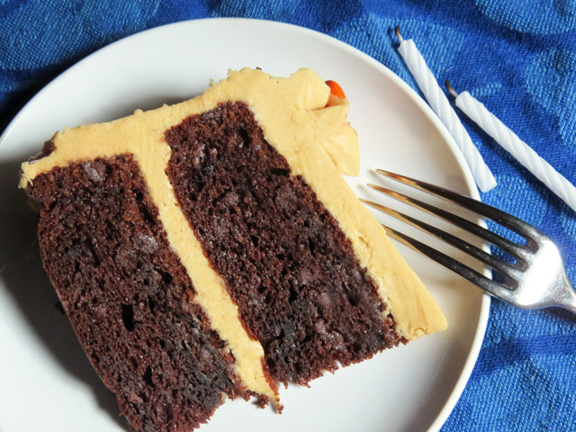 If you haven’t heard – peanut butter and cream cheese is a match made in heaven! This frosting was the perfect compliment to the chocolate sour cream cake The Boy and I made to celebrate his birthday over the weekend. It’s easy to make, spreads and pipes nicely, and has just the right amount of tang and peanut flavor.