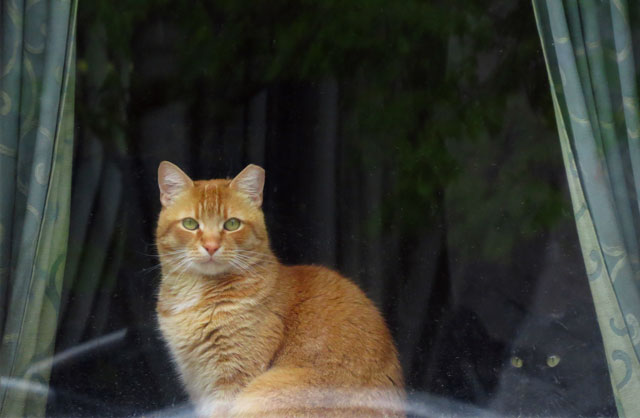 A neighborhood cat, if you look to the right, you’ll see the green eyes of a black kitty.