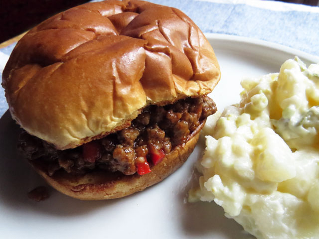 This recipe for Sloppy Joes is an easy-to-make dinner when you don’t feel like making dinner. I pulled this together in 20 minutes, mainly out of pantry ingredients, and served it with a side of potato salad. It’s an American classic, comfort food, and it got the fellas’ stamp of approval!