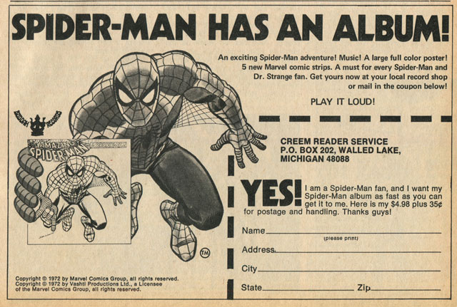 Still, people at Marvel thought the album rocked and tried to chase down the head shop crowd with a huge color spread in this 1973 issue of Creem.