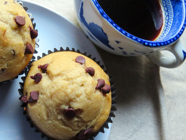 These Chocolate Chip Muffins are magnificent – soft, moist, and spiced with cinnamon. They’re perfect in the morning, paired with a cup of coffee, or for an after dinner snack – you can never go wrong with chocolate chips!