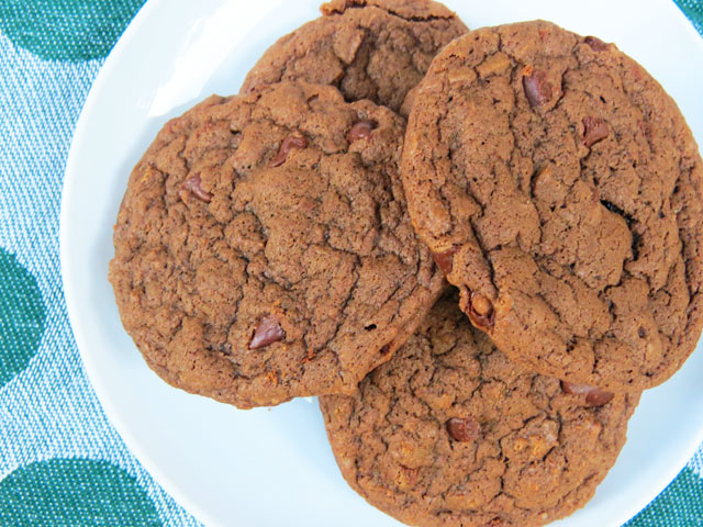 These cookies were The Boy’s idea, last week it was chocolate chip muffins, I sense a theme. These cookies are chewy and chocolately and delish!
