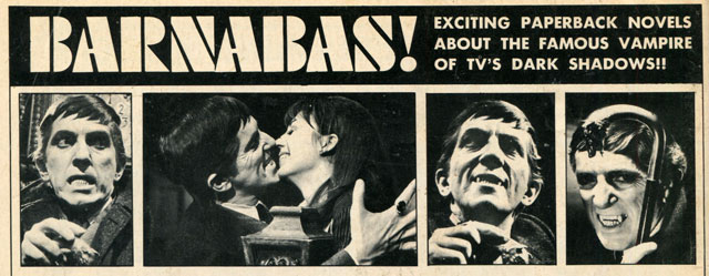 This was an ad for a series of paperback novels based on the wildly popular gothic horror soap opera series Dark Shadows. This was like a number of shows in the 1960s that through some quirk of fate caught the public’s imagination and the producers or the network decided to push out merchandise while the show was hot. Dark Shadows spawned books, tee-shirts, comic books, model kits, record albums and two films that were released theatrically.