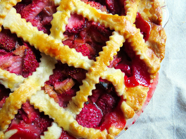 Strawberry Rhubarb pie is one of my favorites, I love the combo of the tart rhubarb and sweet strawberries. A splash of orange juice helps to bring out the flavor of the fruit. Heatwave be damned, make this pie!
