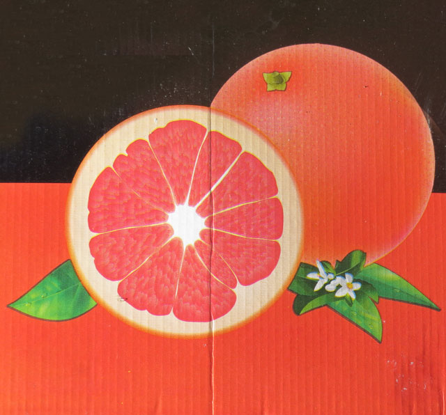 Every now and again, I’ll spot an interesting produce box on 9th Street – like this grapefruit box. The bright colors really pop off the black background!
