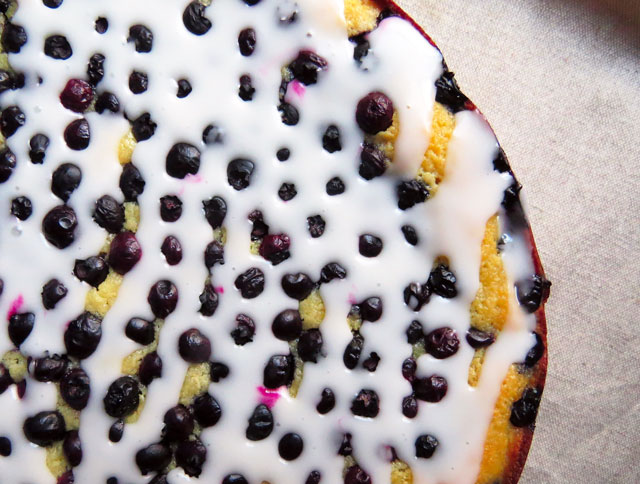 Wanting to take advantage of delicious summer fruit before the season is over – I give you Lemon Blueberry Ricotta Cake! A simple batter made with eggs, ricotta, sour cream and lemon zest, sprinkled with blueberries and topped off with a lemon glaze. It was the perfect finish to last night’s cookout.