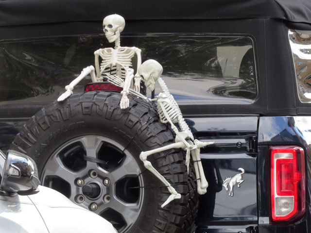 This doesn’t really qualify as a truck mascot, but in the spirit of the season I present you a pair of spare tire skeletons. It is October 1st after all.