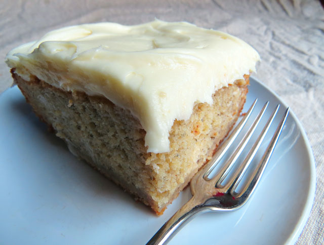 This banana cake is perfect for those overripe, spotted bananas in your fruit bowl. It’s easy to put together, moist, and the cream cheese icing is the crowning glory!
