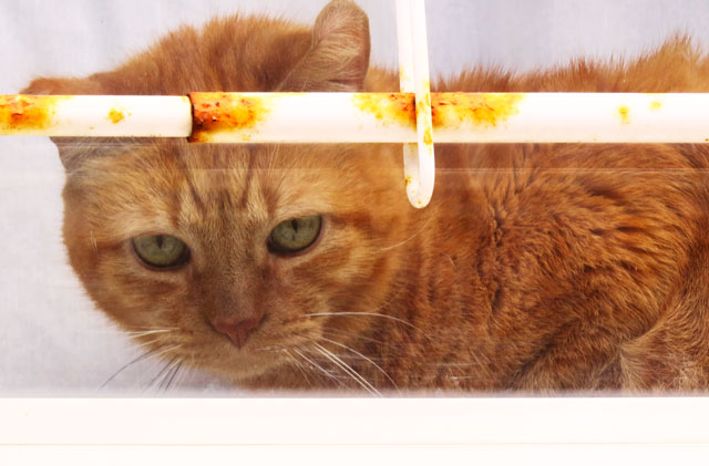 A neighbor’s cat. Not plywood, but probably a cousin.