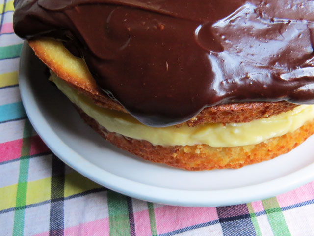 It was The Boy’s birthday and we decided on a Boston Cream Pie to celebrate. Boston Cream Pie was invented in 1856 by a French-Armenian chef. It was called a pie because the cake was baked in a pie tin. At the time, most people had pie tins – not cake pans.