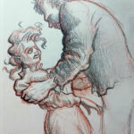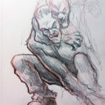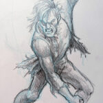 Below is a gallery of some of the drawings I actually liked from this sad sketchbook. I post them for my own reference. It’s a lot easier to find a particular doodle on this website than it is flipping through the dozens of spent sketchbooks in my studio. It also helps me keep an informal chronology of my work. If readers enjoy these sketchbook scratchings, I am grateful for the appreciation! Feel free to leave a comment below.