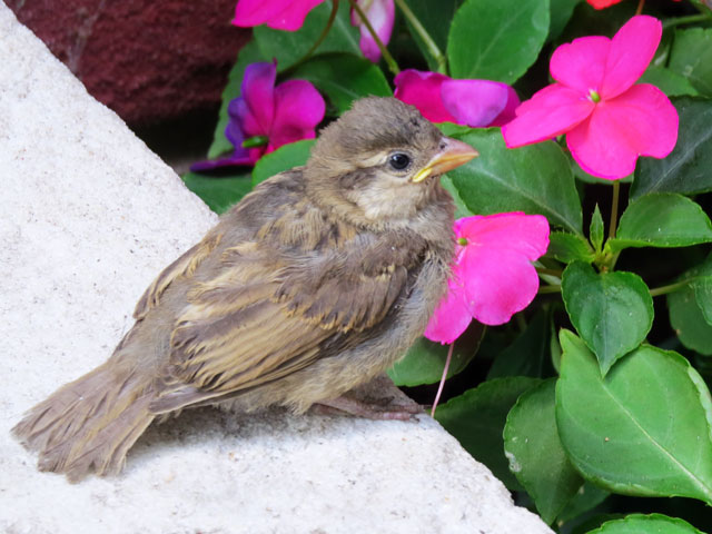 I didn’t use a zoom lens. I came home to find this little fella sitting on my steps and he didn’t care to move! Eventually, he did fly away – maybe he was admiring my flowers!