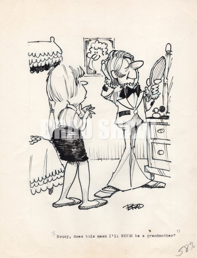 My meager budget precludes me from being a collector of original art, but when this cartoon by Brad Shaw for an old and long gone men’s magazine became available at a price I could not resist, I did not resist it!