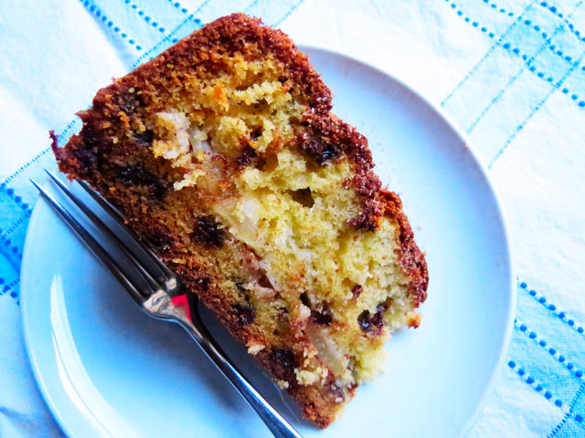 This is a very good coffeecake, studded with mini chocolate chips, the batter layered with cinnamon sugar and thinly sliced apples in the middle. Simple enough to put together for everyday, but impressive enough to serve at brunch.