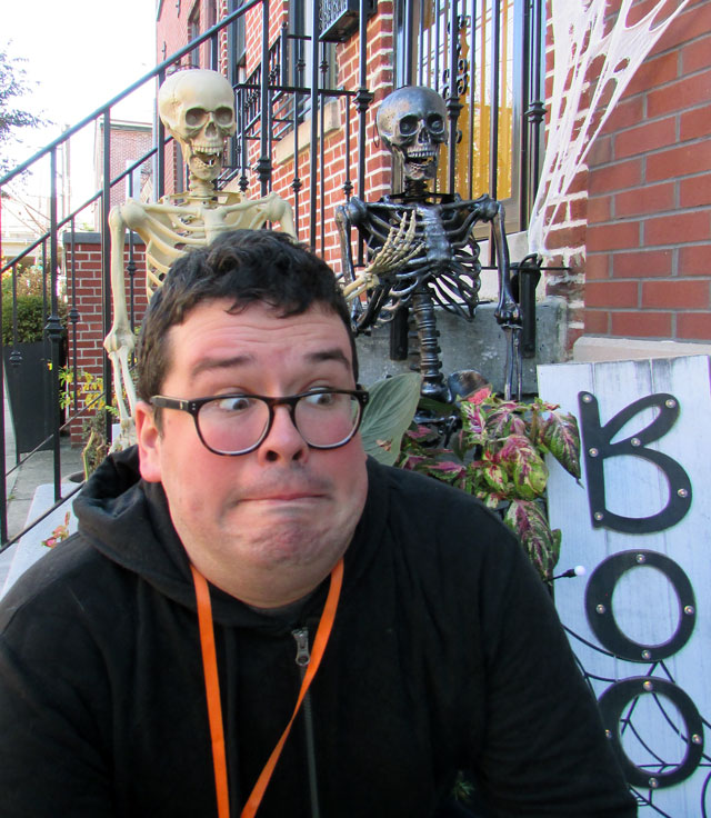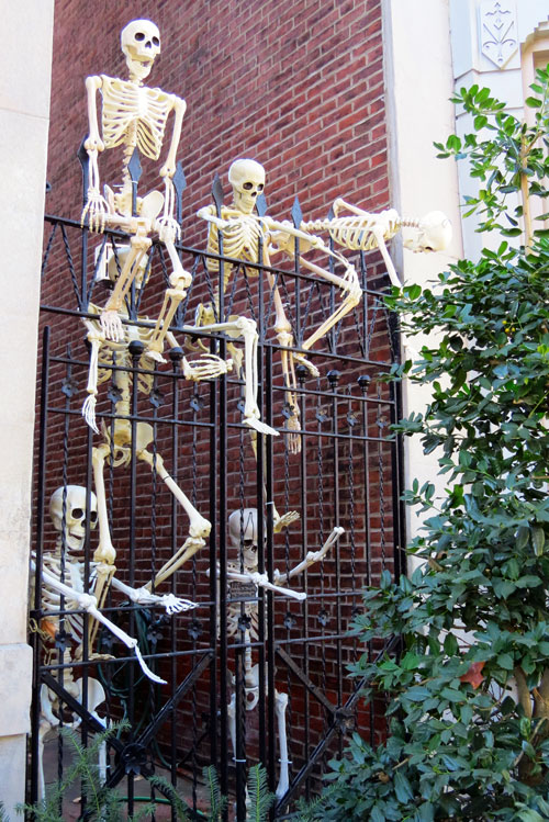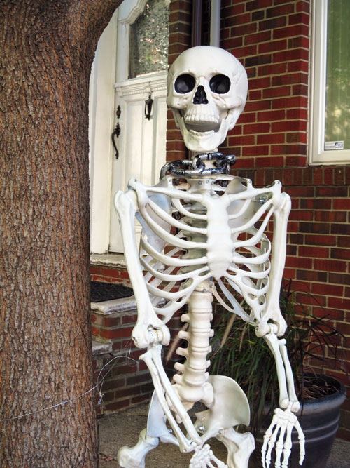 For reasons unknown, life-sized plastic skeletons seem to be all the rage in urban Halloween decorating this year. You can’t walk down the streets of South Philadelphia without seeing the disgorged contents of a graveyard in polystyrene.